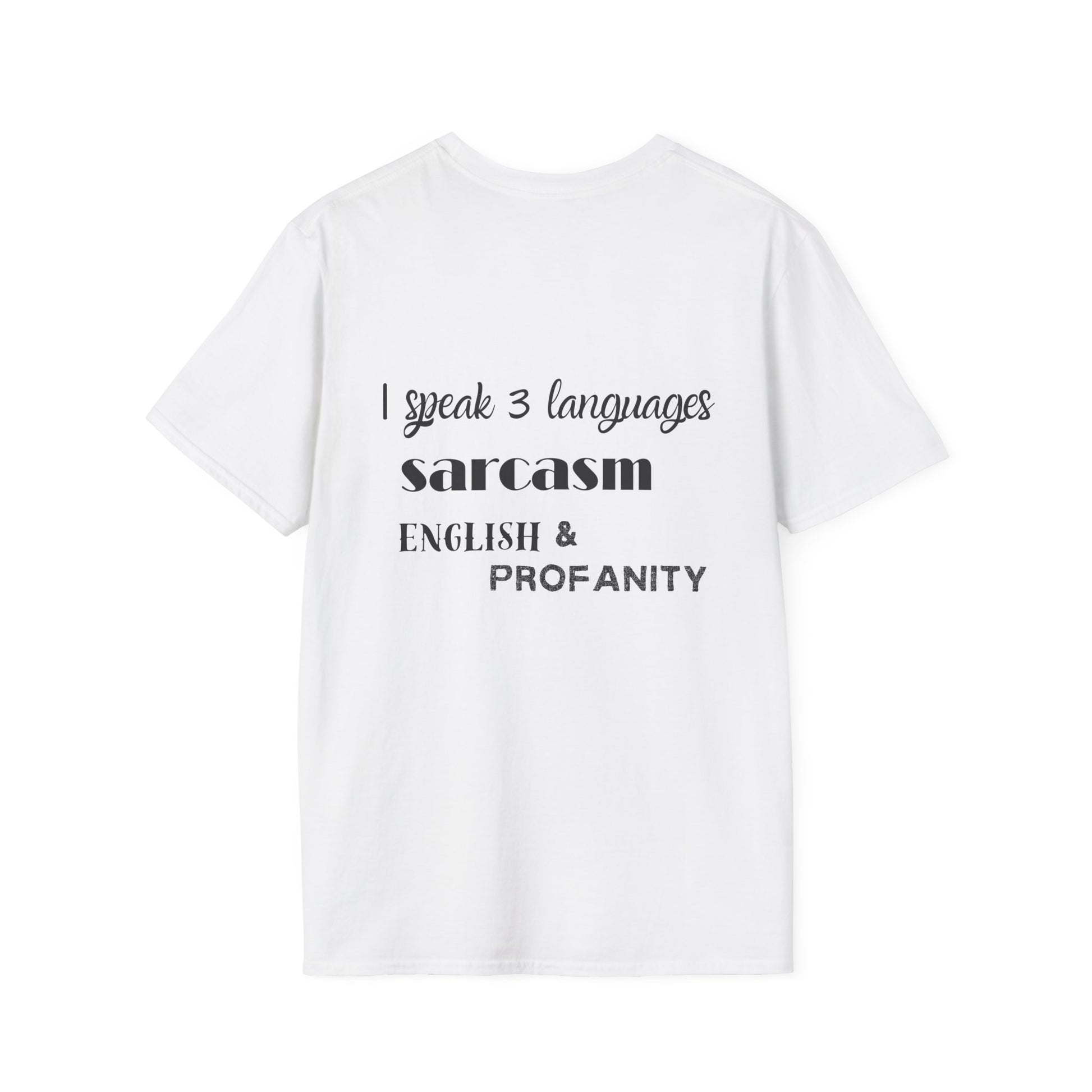 This T-Shirt is perfect for those who speak 3 languages: sarcasm, English, and profanity. Made from specially spun fibers that result in a durable and smooth fabric, this unisex T-shirt is suitable for adults and offers a classic fit with a crew neckline for versatile style. Ideal for everyday wear or as a statement piece, this T-shirt is made with 100% ring-spun cotton and features ribbed knit for shape retention.