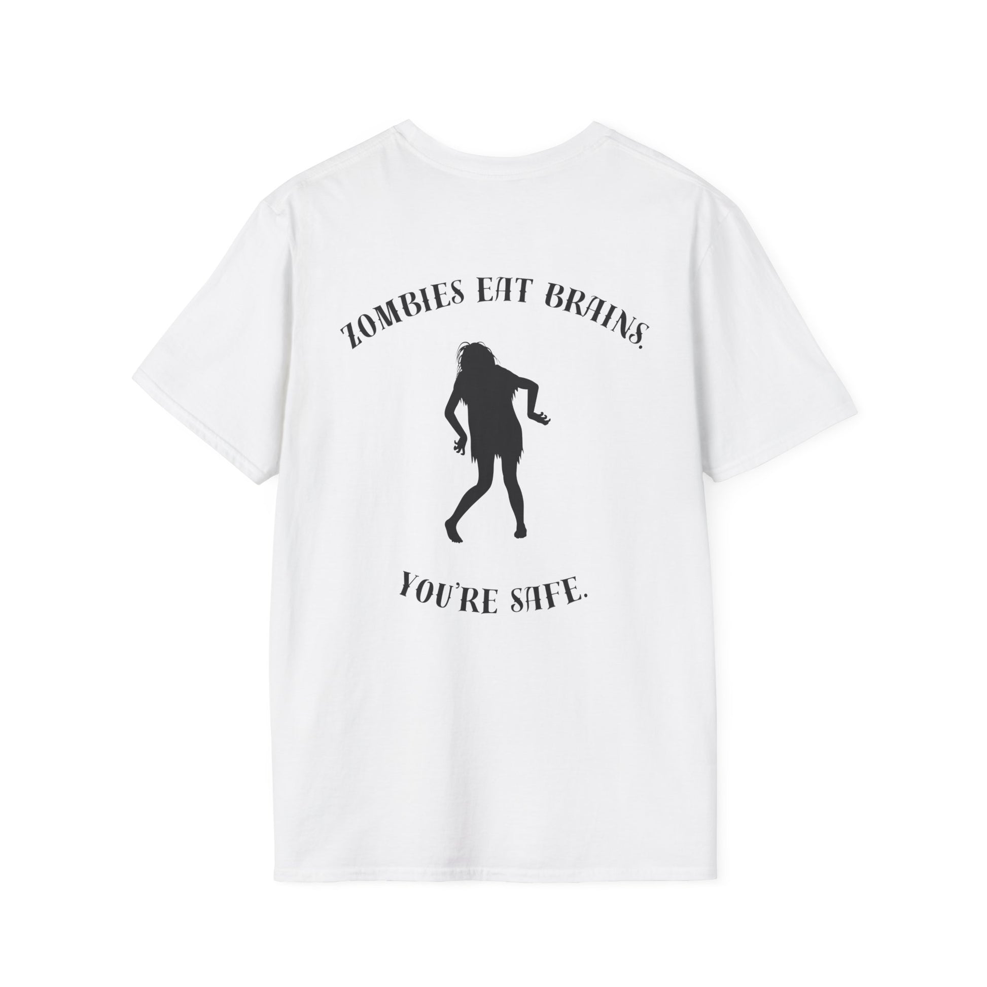 This humorous zombie-themed T-Shirt is perfect for those who enjoy a touch of dark humor. The soft and durable fabric makes it comfortable to wear year-round. It's a versatile piece that can be worn casually or dressed up for different occasions. Ideal for adults who appreciate quirky and unique wardrobe choices, this T-Shirt is great for Halloween, zombie-themed parties, or everyday wear.
